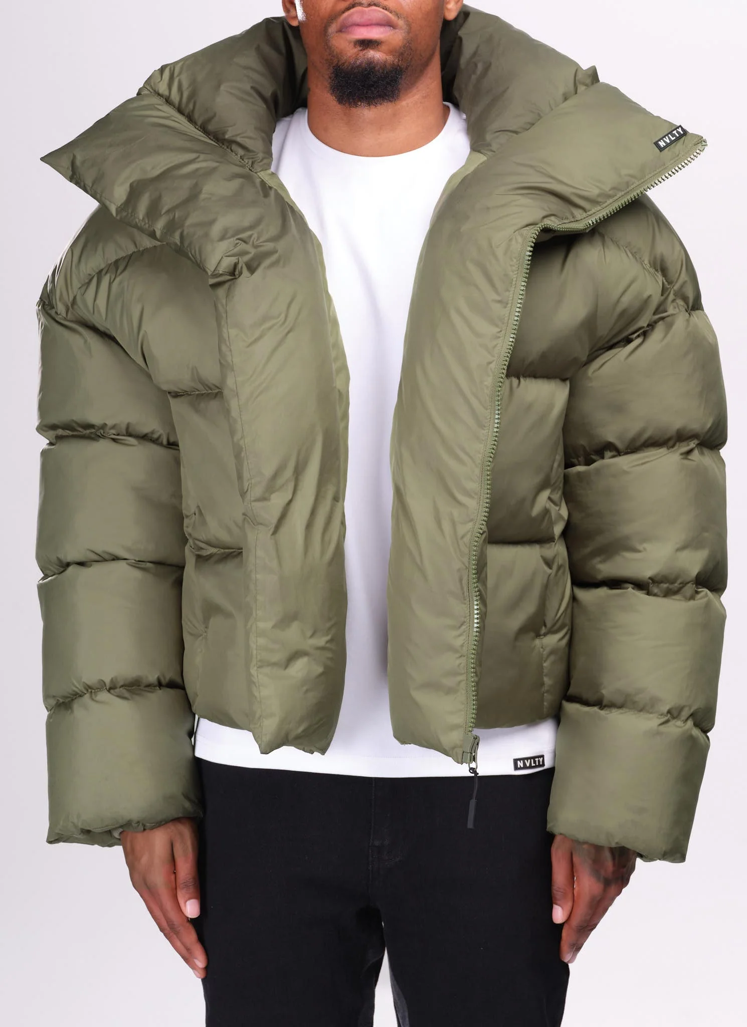 nvlty Vintage Shawl Collar Puffer Jacket – Khaki